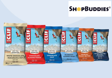 - Aktionsprodukt: Clif Bar White Chocolate Macadamia Nut 68 gr & Crunchy Peanut Butter 68 gr (in Geschäft und online), Chocolate Almond Fudge 68 gr, Peanut Butter Banana with Dark Chocolate 68 gr, Blueberry Almond Crisp 68 gr oder Chocolate Chip 68 g (nur online)