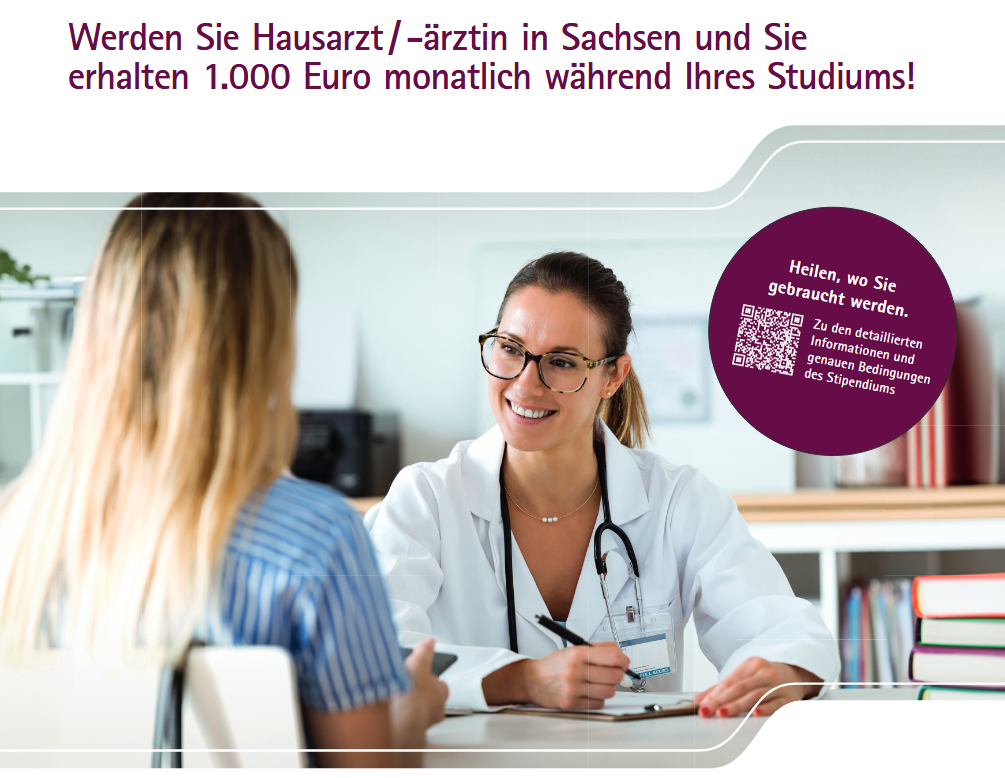 Sie studieren Medizin, weil Sie helfen und heilen wollen - eine gute Wahl! Der Freistaat Sachsen braucht junge und engagierte Ärztinnen und Ärzte, vor allem in den ländlichen Regionen. Deshalb werden auch in diesem Studienjahrgang 20 angehende Allgemeinmediziner/-innen durch ein Hausarztstipendium gefördert. Voraussetzung ist, dass die Stipendiaten des Medizinstipendiums sich gern künftig in Sachsen niederlassen möchten.